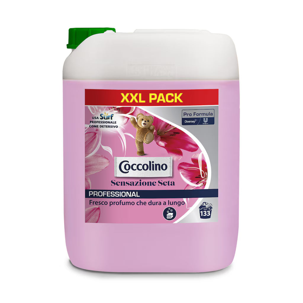 Coccolino Sensazione Seta Professionale è un ammorbidente ad alta qualità, che rende gli indumenti morbidi, soffici e piacevoli al tatto.